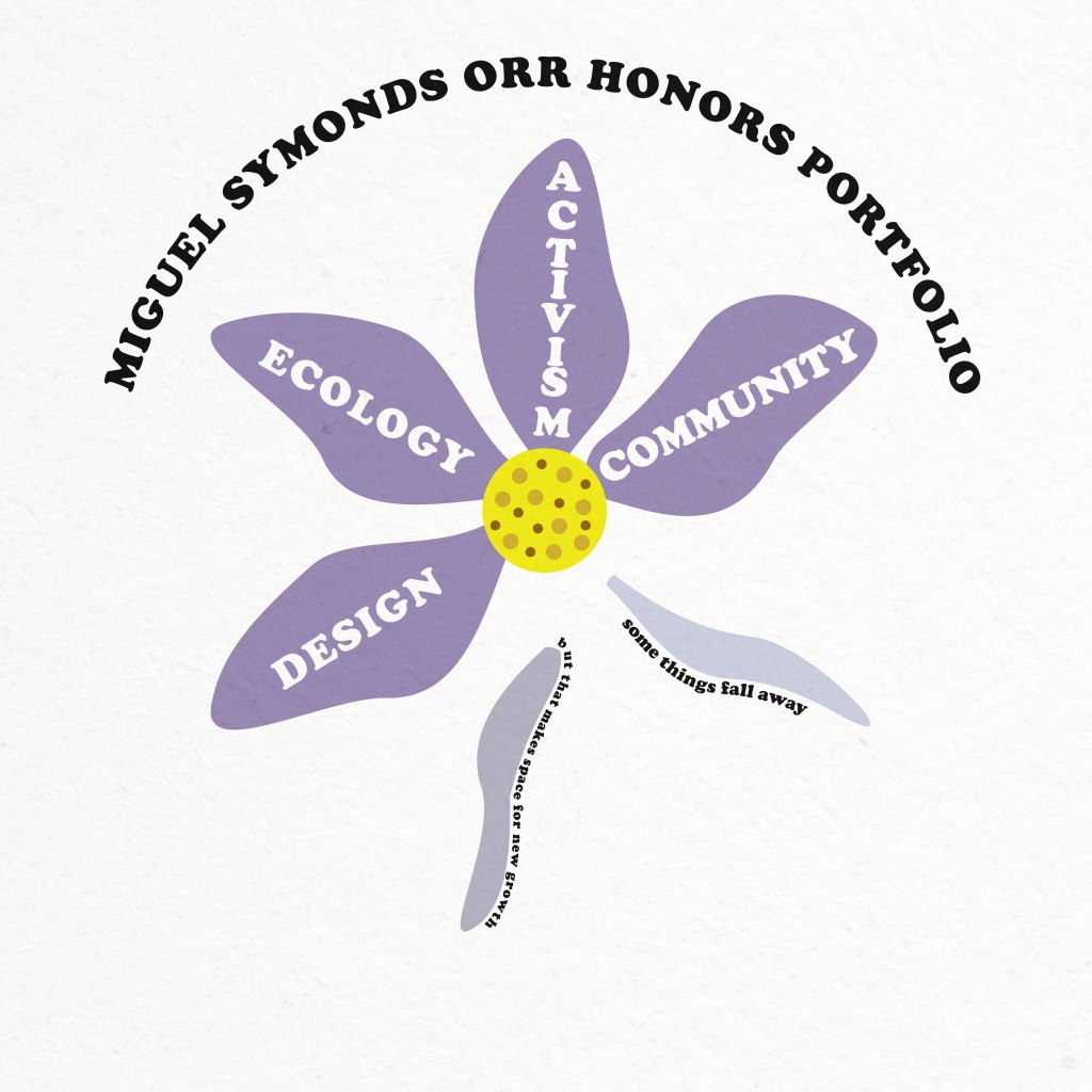 It’s hard to tell where one of these themes ends and the other begins, and they all inform each other. My attempt in life is to bring each of these elements further together – I see them as my life’s work and want to express them through various facets of my life. I am most confident in Design and Ecology – hence, I put them first in my portfolio – yet as I progress through UW, I’ve found Activism and especially Community critically important, although I struggle more to grow them in my life. Each of these ‘petals’ is part of the same ‘flower’. I’ve explored these themes within the classroom and beyond, and all sides of my learning experience are documented in this portfolio. Work outside of the classroom – whether in jobs, with clubs, or personal projects – often represent opportunities to put my ideals and ideas into practice.