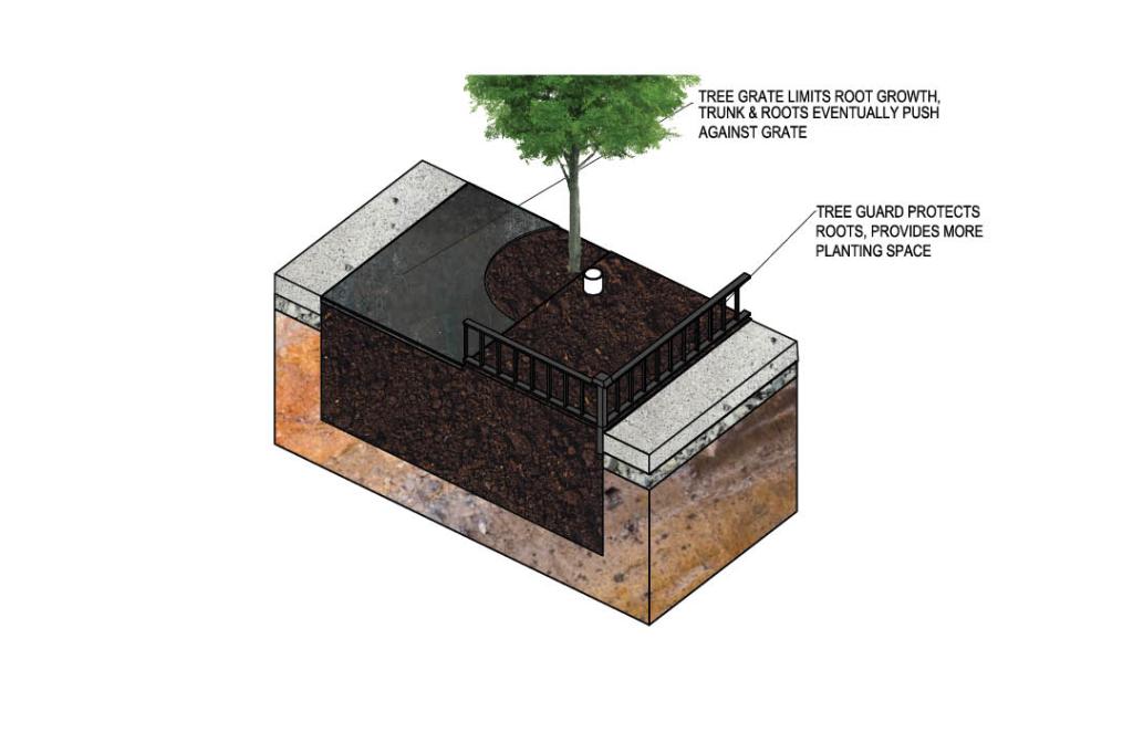 TREE GRATE VS TREE GUARD DETAIL COMPARISON