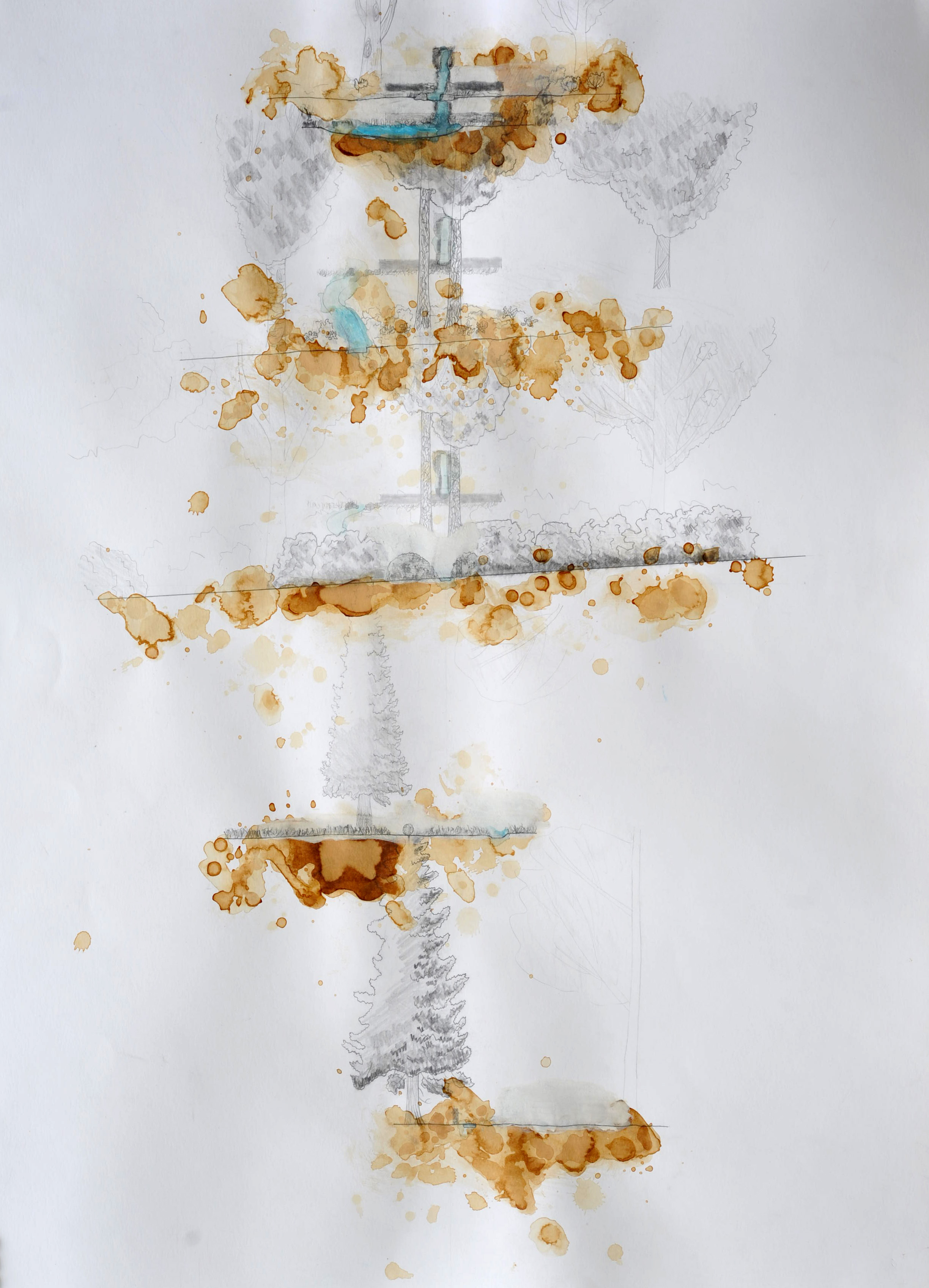 The plans and sections of this project build directly upon past explorations of this site in this course, hence the use of whiteout and diversity of marks on the pages of the plans and sections. The art style of the plans and sections is a result of the instruction of Julie Parrett, in turn heavily influenced by the work of Anuradha Mathur and Dilip da Cunha. The style of the Water Fountain Component Diagram draws upon the style of the graphics in Julia Watson’s book Lo-TEK.